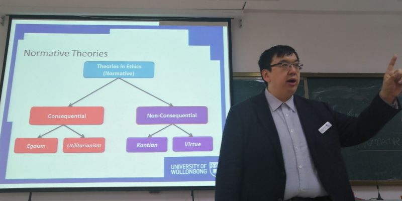 《商业伦理》双语课程申报的校级课程国际化项目,该项目已经进行了第二学年。Kevin Huang,作为该课程海外教师,现为澳大利亚伍伦贡大学(University of Wollongong)商海角视频