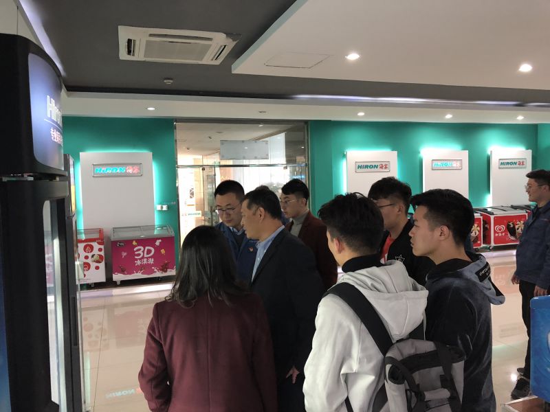 相关专业的本科生进行实习培训,同时设立“青岛海容冷链”专项基金,金额为一年30000元,用以激励该专业积极参与社会实践活动、品学兼优的学生,共同做好本科生的专业实践效果跟踪管理。签约仪式后,在袁鹏带领下,我院师生实地参观青岛海容商用冷链股份有限公司的生产车间及展销产品,对公司项目及相关业务流程有了更加深入了解。