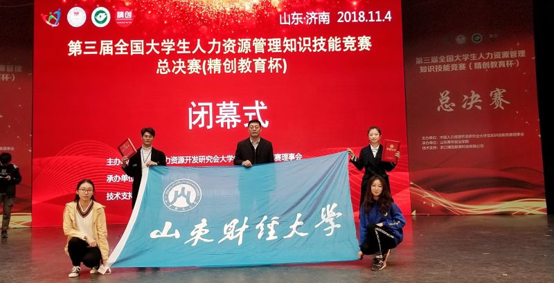 承办,浙江精创教育科技有限公司协办,由7个本科组大区、2个高职组大区中晋级的81支队伍参加,参赛师生达到600余人。我校人力资源管理专业4名同学组成的代表队经过近8个时不间断的激烈角逐,最终获得国家二等奖、最具潜力奖。