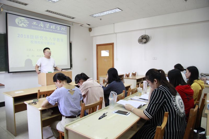 2018级研究生入学教育校规校纪专题讲座在2号教学楼2406教室隆重举行。本次讲座由研究生辅导员尤泽民担任主讲,2018级全体研究生参加。