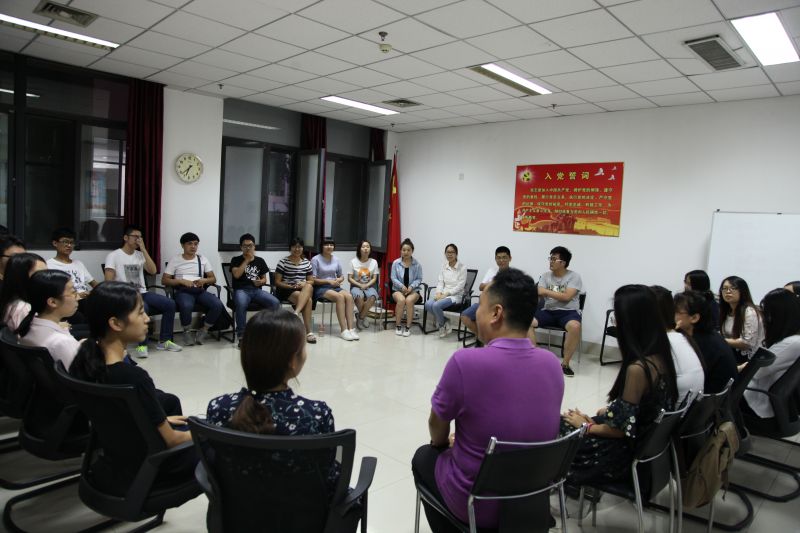 韩召:9.13号晚上刘洪涛老师和我们进行了一场既轻松又意义深刻的“和新生朋友谈入党”活动,以活动为载体,传道授业解惑。从简单拍背活动体现出的深刻服务意识,到同学假设自己是曾经的优秀党员来体会不易,又通过同学们去整体模拟党的指导思想发展历程,轻松背后是深刻而伟大的意义,正如同学们最后总结的词,“伟大”、“团结”、“没白来”等等一样。作为一名中国共产党党员,全场最自豪的是手擎党旗的时刻,不忘初心跟党走,砥砺前行不回头!