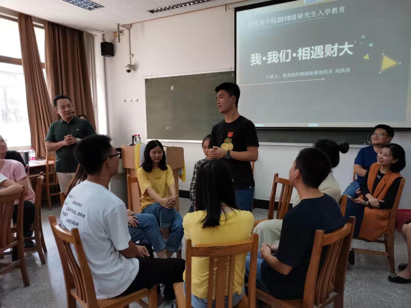 9月16日下午,我院2019级研究生入学团体心理辅导在2号教学楼2208教室举行。本次活动以“我 我们 相遇财大”为主题,旨在促进2019级研究生互相熟悉,深入了解,激发团体动力,促进团队建设。学校党委组织部副处级组织员、国家二级心理咨询师刘洪涛应邀带领活动,海角视频