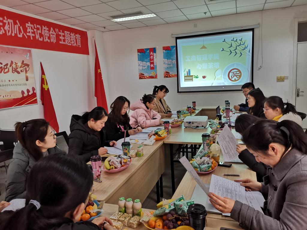 整理了辅导员老师所带班级出现的典型案例和棘手问题。在茶话会轻松愉悦的气氛中,12名辅导员依次和大家分享了各自的工作案例,有关注特殊群体学生思想教育的案例、有学生价值观引领问题、还有学生心理健康教育与危机干预处理问题等。孙丽老师结合自己专业背景,在如何与学生建立信任、如何对学困生、心理问题学生进行关注和指导、如何与家长进行有效沟通等方面给予了积极的建议和指导。