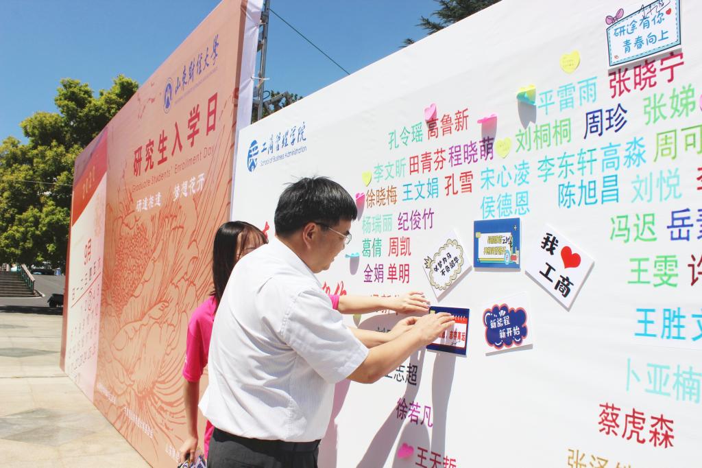 党委书记李旭刚、院长刘军、党委副书记彭艳红也在现场指导工作,整个迎接工作亮点突出、高效有序。最后大家一起将祝福贴满墙,我院研究生迎新工作圆满完成。
