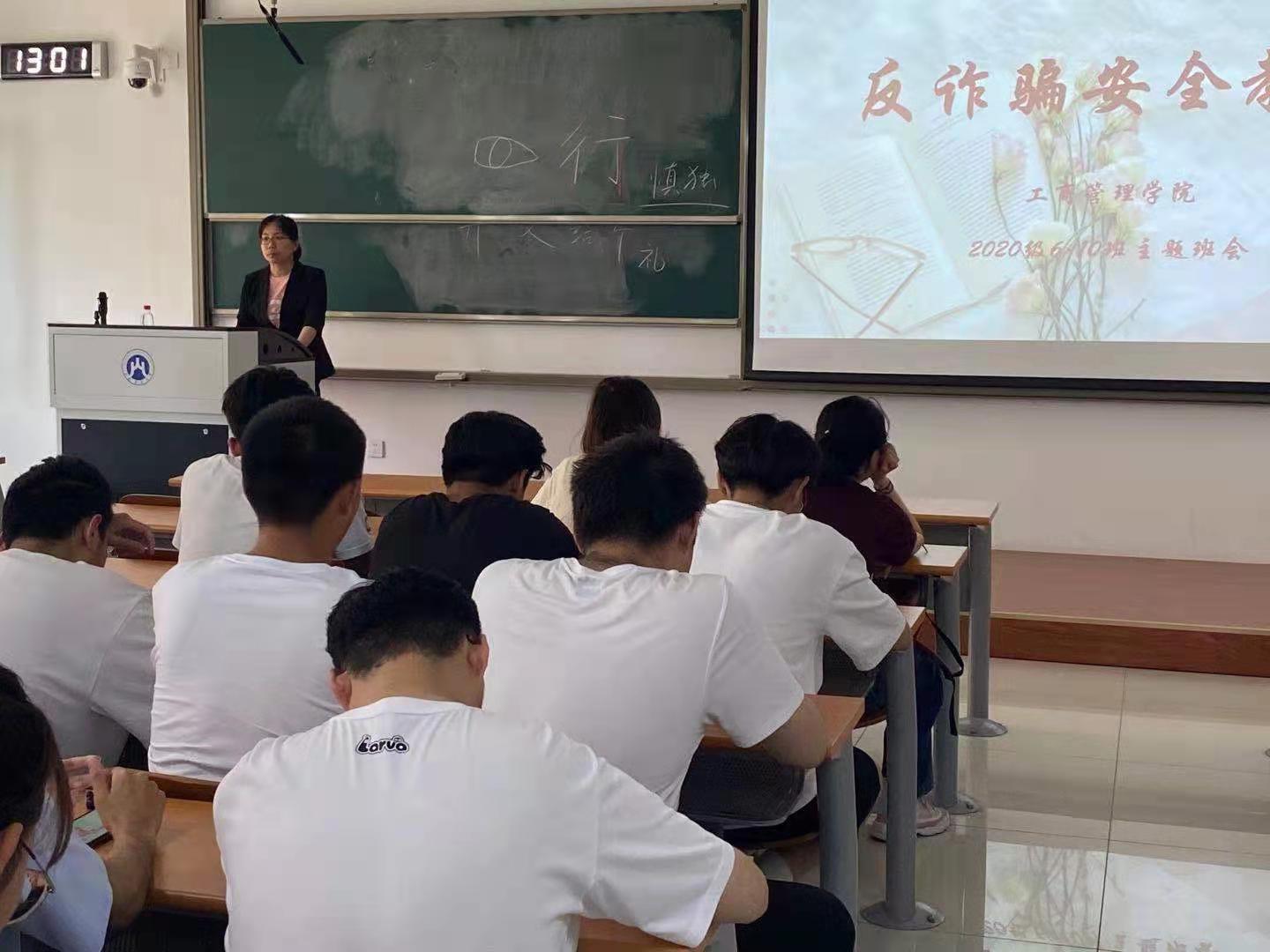 此外,班会还传达了学校《学生安全每日零报告规定(暂行)》、《关于做好2021届毕业生教育管理服务工作的通知》、疫情防控、宿舍消防安全大检查等相关文件通知。老师们借助两段视频介绍了电动车着火的惨痛案例,重点强调了宿舍消防安全的重要性。班会要求全体学生遵守校规校纪,保持手机畅通,保障人身安全;各宿舍长严格执行每日零报告规定,每晚23:00前报告未按时返还宿舍的人员情况;党员和学生干部一定要以身作则,充分发挥模范带头作用,协助学校做好疫情防控、宿舍消防安全检查,同时作为班级反诈宣传员,深入同学中进行防诈骗宣传,建设平安校园。