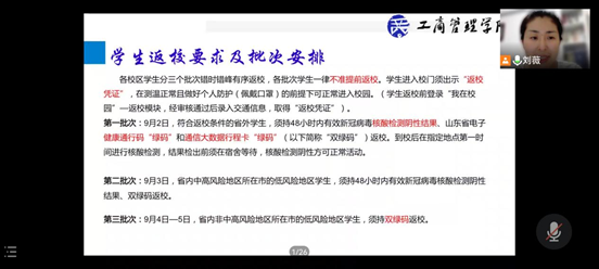 我院严格遵循学校的返校工作方案等相关文件和信息的规定,利用“我在校园”平台等方式,按照返校前学生个人健康情况调研、学生返校申请、省内外错时错峰返校等一系列流程来确保学生安全返校。细致的规定,严谨的步骤,为工商学子的平安返校铺就稳固的桥梁。
