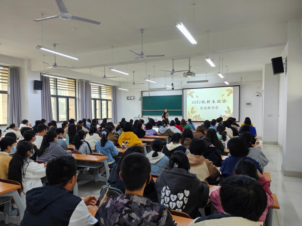 新生辅导员老师徐建英、尤泽民、张景赛分别主持,2022级全体同学参加。