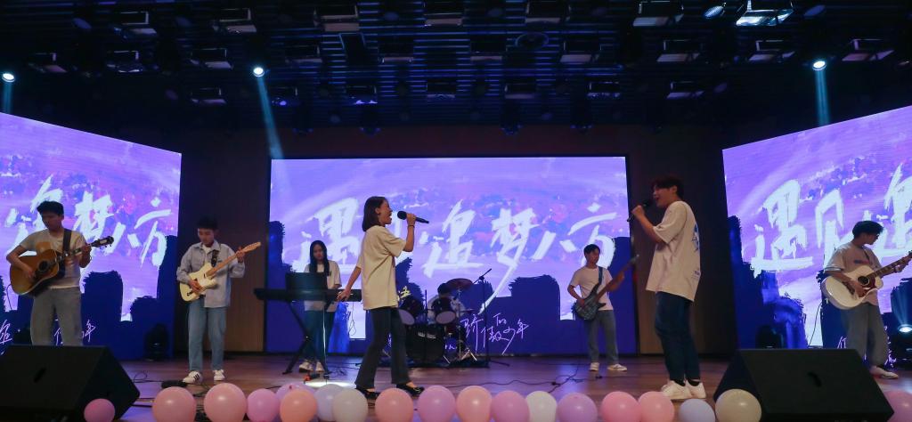 师生员工踔厉奋发的开场视频,我院“青春正好,逐梦笃行”文艺晚会在圣井校区大学生活动中心拉开序幕。