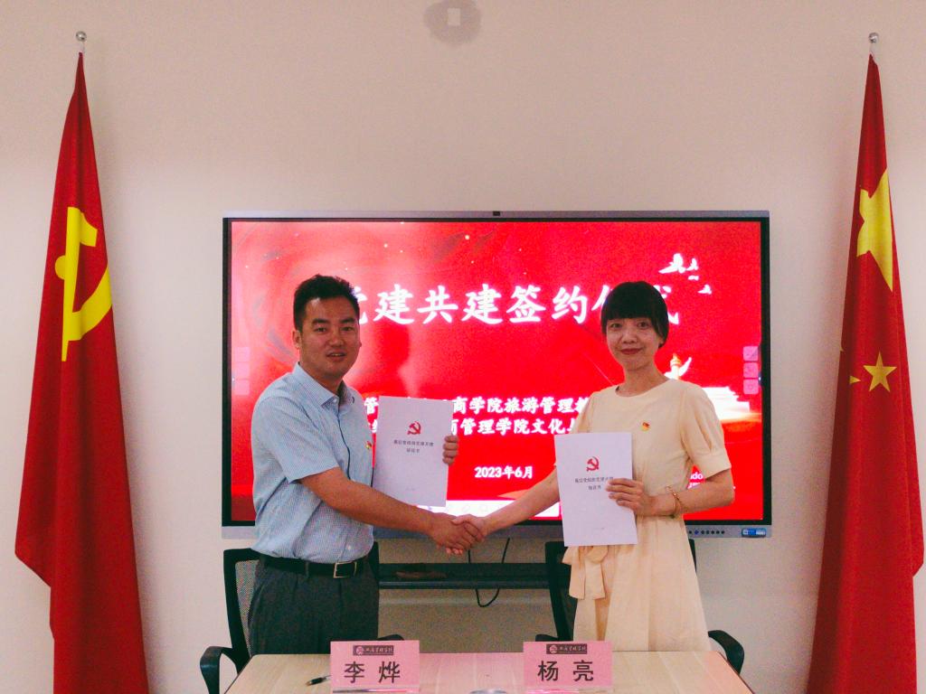 旅游教研室党支部书记李烨和我院文化与旅游系党支部书记杨亮共同签署了《基层党组织党建共建协议书》,就党建与业务融合发展、专业建设和教学、科研及社会服务等工作进行了深入探讨,并达成了长期交流合作意向。