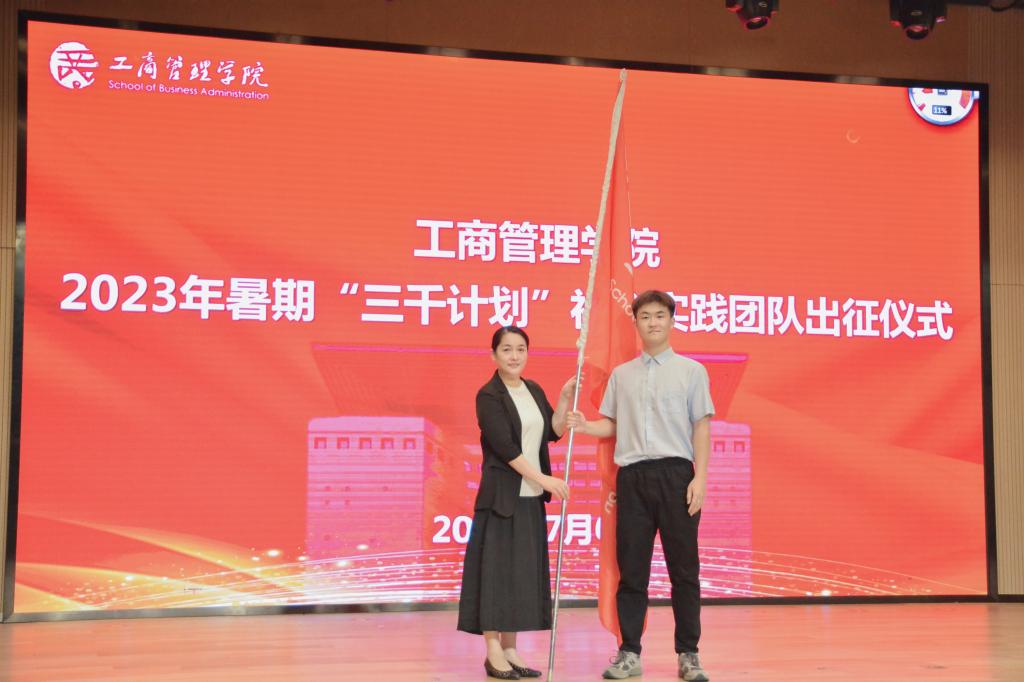 侯昭瑾为实践团队代表授旗。今年暑期我院共组建143支团队,参加学生1600余名、指导教师200余名,围绕红色专项、国情观察、乡村振兴、文化艺术等多个高质量、时代性项目开展,引导同学们在实践中受教育、长才干、做贡献。