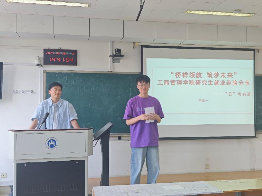 为进一步加强同学们对公务员考试的了解,提升公务员考试的备考能力,5月28日下午,我院于逸夫楼219举行“榜样领航助力未来”为主题的研究生就业经验分享会(二):“公”考有道。本次活动邀请我院研究生第一党支部书记、2021级硕士李章一分享考公的经验,会议由研究生会主席曹炳凯主持,研一、研二全体研究生参加。