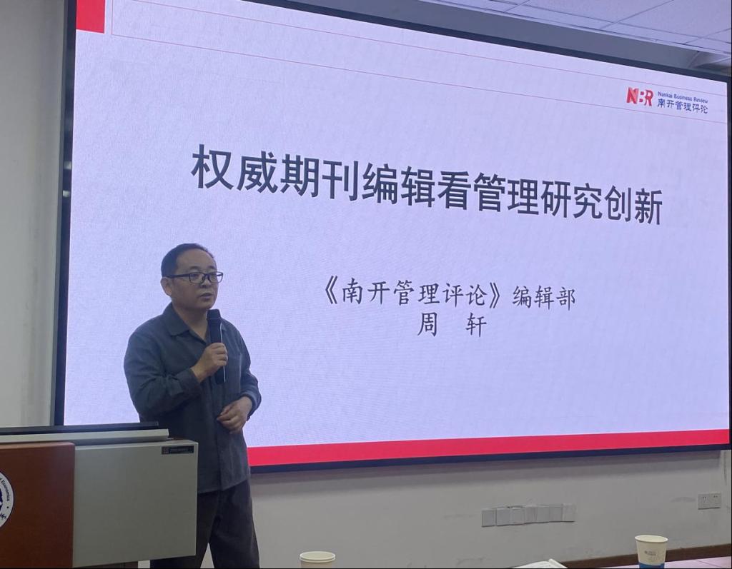 204教室顺利举行。本次讲坛特邀《南开管理评论》编辑部主任周轩作题为“权威期刊编辑看管理研究创新”的学术报告。海角视频