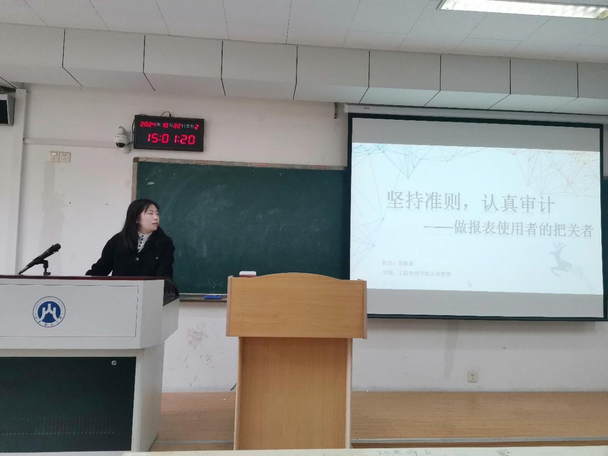 活动伊始,苟芳晴围绕确定目标岗位、匹配岗位能力、简历制作和现场答辩四个方面,详细介绍了职业规划大赛的整体流程。她建议同学们从个人经历出发,挖掘自身优势,明确目标岗位。展示岗位匹配技能时,强调要精简经历,避免冗余,突出与目标岗位高度契合的能力。在答辩环节,她指出,答辩PPT的内容应与简历内容相辅相成,从多维度展现个人优势,更全面地向评审老师展现自身能力。