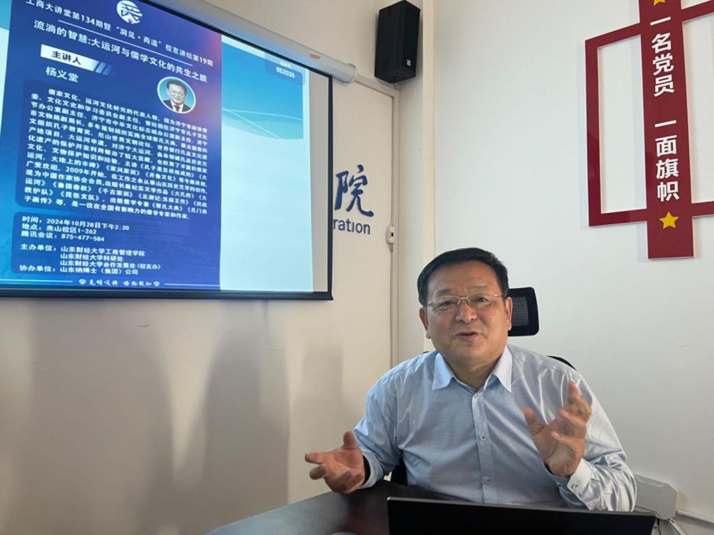 第134期暨“洞见·商道”校友讲坛第19期在燕山校区1262会议室顺利举行。本次讲坛特邀著名作家、儒家文化、运河文化研究的代表人物——杨义堂先生作题为“流淌的智慧:大运河与儒家文化的共生之旅”的讲座。海角视频