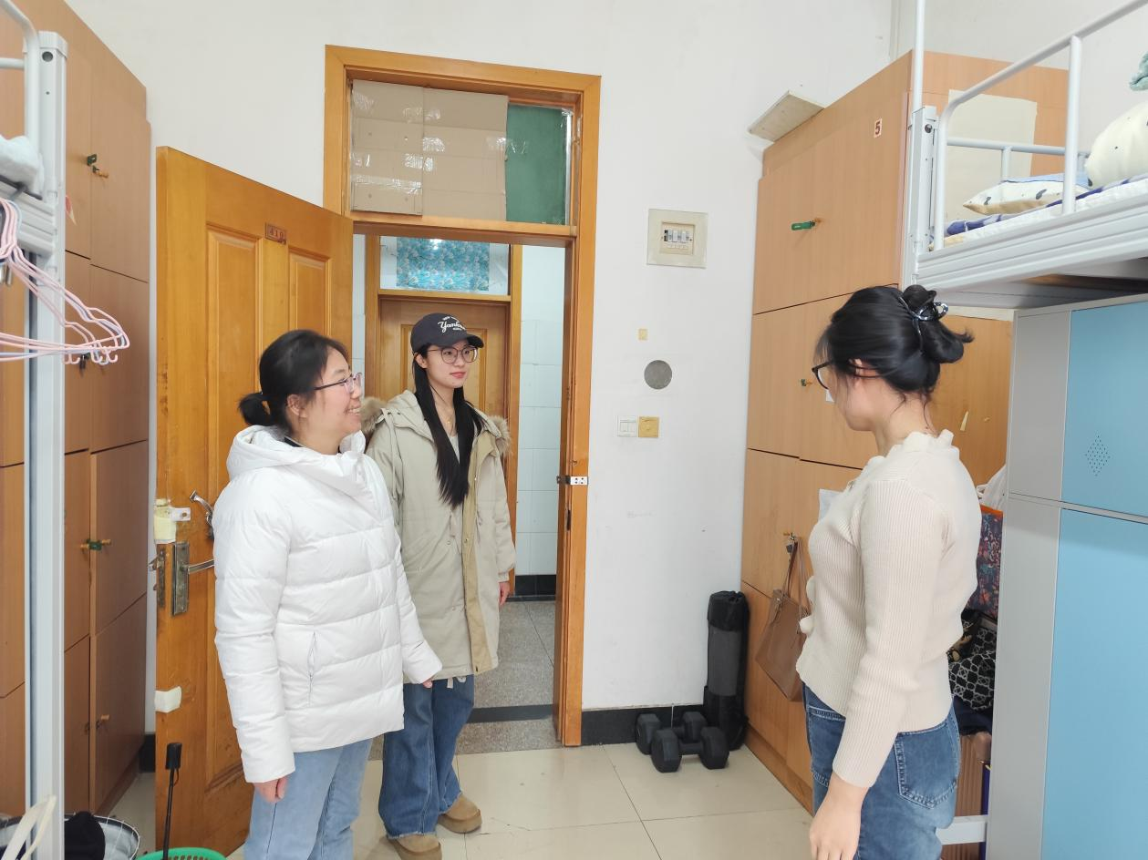 研究生辅导员郭丽娟带领研究生会成员开展研究生宿舍安全卫生检查。