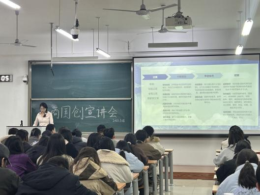 王晨曦为同学们分享了详细的创赛经验。她介绍了比赛项目包含立项、中期报告、季度报告以及结项等关键环节,让同学们对国创流程有了清晰认知。在国创选题方面,学姐建议同学们从自身实际出发,多角度考虑选择适合的选题。