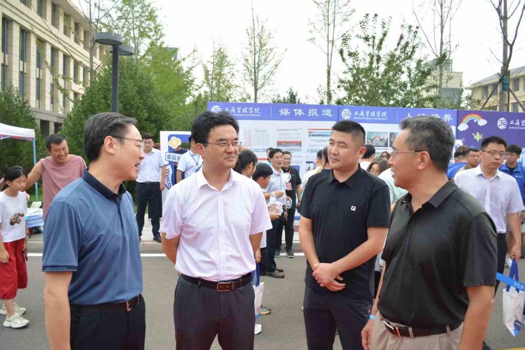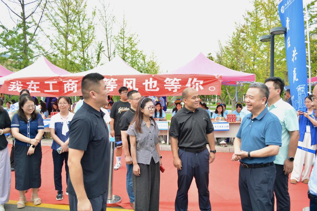 迎新现场指导工作,慰问工作人员和志愿者,并与新生、家长亲切交流,送上欢迎和祝福。