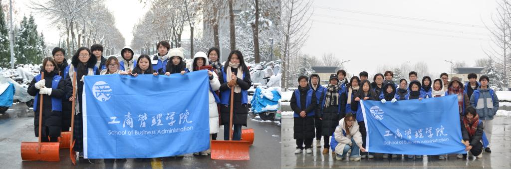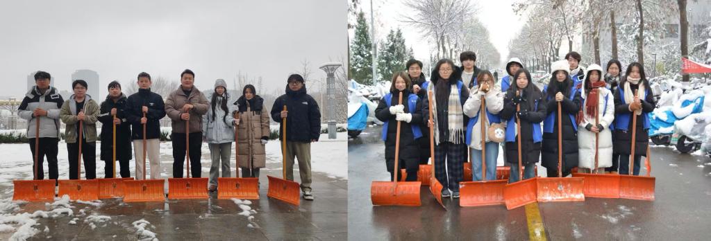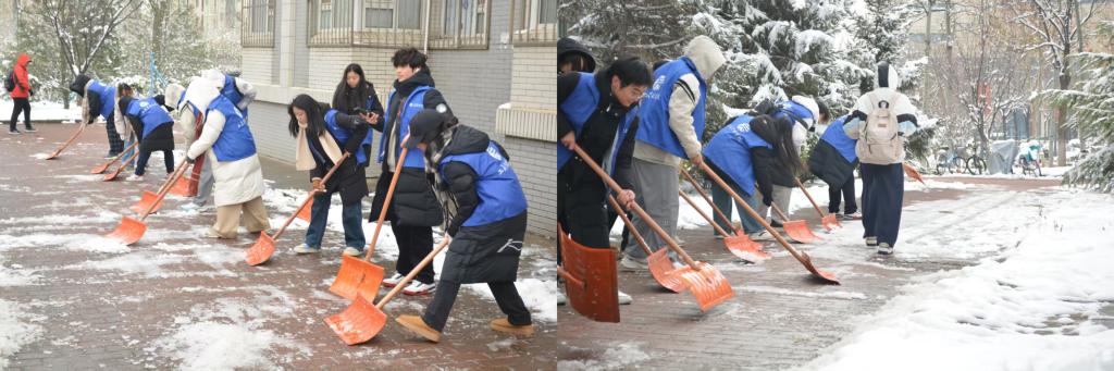 迅速响应,在燕山、章丘校区组建以师生党员、学生骨干为核心的先锋队开展校园清雪除冰行动。