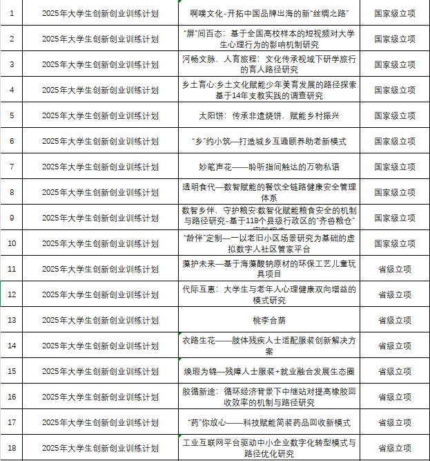共有18个项目获批立项,其中国家级项目10项,省级项目8项。海角视频