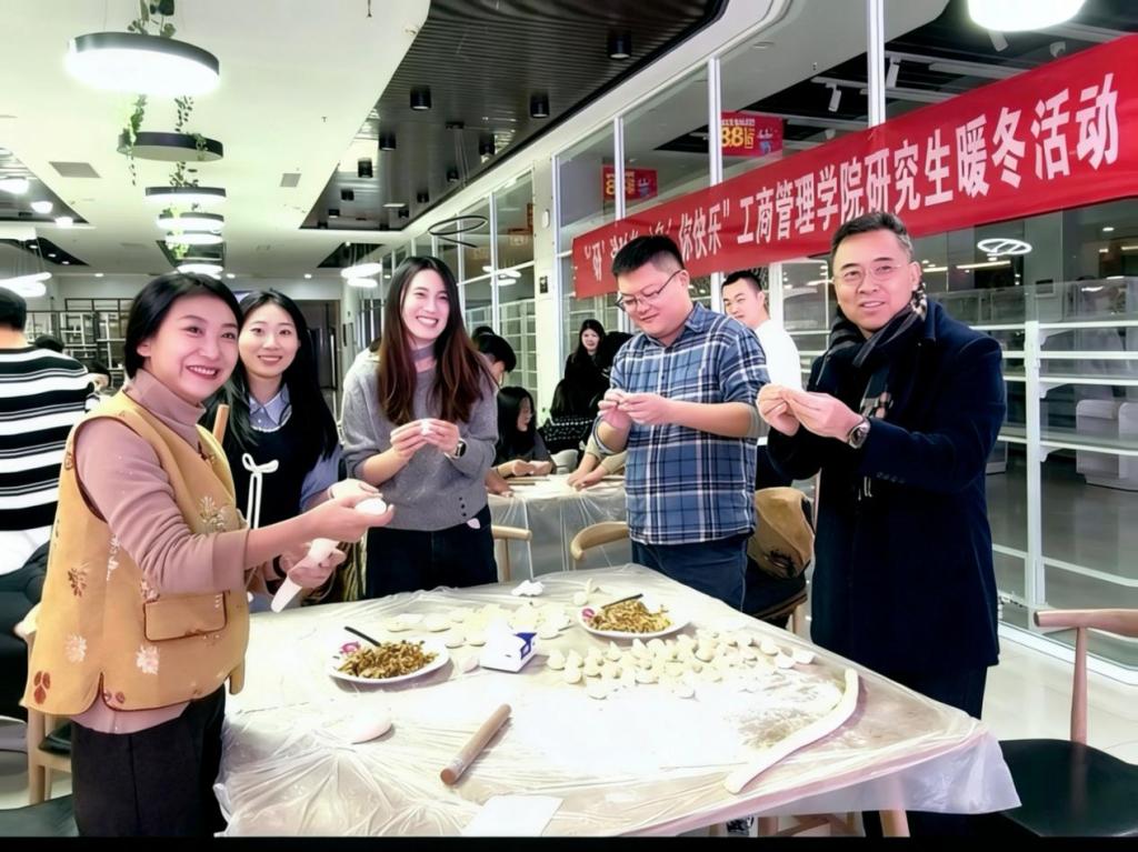 活动现场,民俗体验与多元互动交织,暖意与活力并存。在悠扬的国风歌曲伴奏下,同学们围坐桌前分工协作,擀皮、填馅、捏褶有条不紊,创意十足的特色饺子层出不穷,将同窗情谊与冬日暖情融入指尖。热气腾腾的饺子最终端上餐桌,鲜香滋味的背后,是研究生大家庭守望相助的温情,更是学术道路上携手同行的深厚羁绊。与此同时,文艺展演环节轮番上演舞蹈、独唱、合唱、萨克斯独奏等精彩节目,旋律悠扬、舞姿灵动,为现场带来了沉浸式的视听体验;看图猜台词、听歌识曲等互动游戏中,同学们踊跃参与、默契配合,欢声笑语让现场氛围持续升温;微信扫码抽奖环节则成功将活动推向高潮,二十位幸运学子收获专属惊喜,为寒冬增添了暖心色彩。