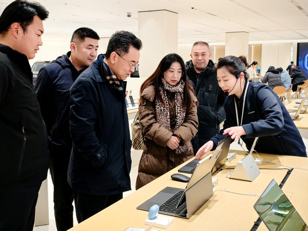 党委书记赵世民带队赴华为智能生活馆(和谐广场店)与山东雄发商贸有限公司开展访企拓岗活动。