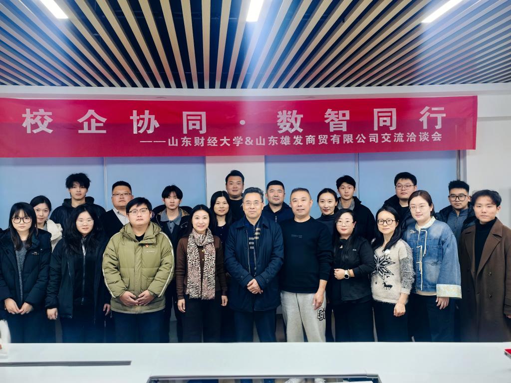 随后,大家前往山东雄发商贸有限公司,在公司总经理、94级企业管理校友孟祥迎带领下,参观企业的办公环境并参加交流洽谈会。孟祥迎介绍了公司的发展历程、主营业务与运营模式,回顾了在校期间的学习成长经历,分享了从就业到逐步走向自主创业的历程与体会。针对同学们关心的行业发展趋势、职业能力准备、个人成长路径等问题,孟祥迎结合自身经验逐一给予了细致解答,并鼓励学弟学妹夯实专业基础,主动适应市场变化,积极把握发展机遇。