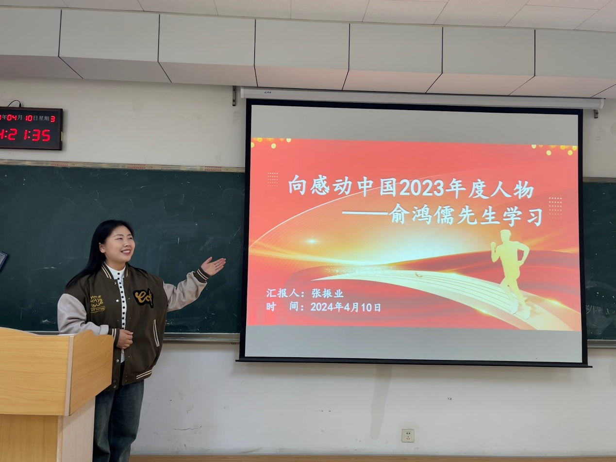 近日,感动中国2023年度人物公布。为了弘扬时代精神,激发同学们的爱国情怀和奋斗精神,我院于4月10日下午在逸夫楼202教室开展了以“致敬时代先锋,感悟俞鸿儒精神”为主题的理论学习周周见活动,研一、研二全体研究生参加。