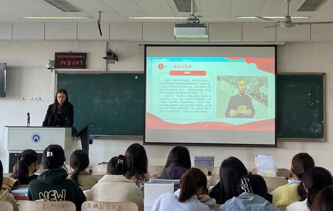 随后,同学们一起观看了一段张买江的采访,从他朴实的话语中同学们切实的感受到了他那不屈于困难的精神力量,即便再苦再难,也一定要把水渠建成的信心。