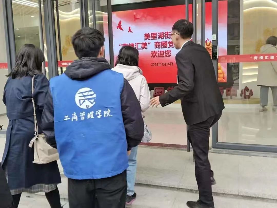 工作人员详细介绍党群服务中心职能服务体系,初心大道以“初”“心”“惠”“暖”“商”“享”“管”“建”为主题,形象全面的阐释了党群服务中心的服务理念和工作宗旨。中心为党建引领新业态新就业群体服务发展引入智能化信息化元素,凝聚党建力量,集聚优势资源,为“两新”党组织搭建学习交流、人才培养、工作提升平台,充分发挥党群服务中心高效服务、助企发展、党群联系等功能,将党建引领、助企惠企关爱新就业群体等工作汇聚一体,为党建与实际工作有机结合赋能驱动作出示范。调研党员深受启发和鼓励,党建如何与专业融合与学生成长成才相互促进将是支部的下一步工作重心。